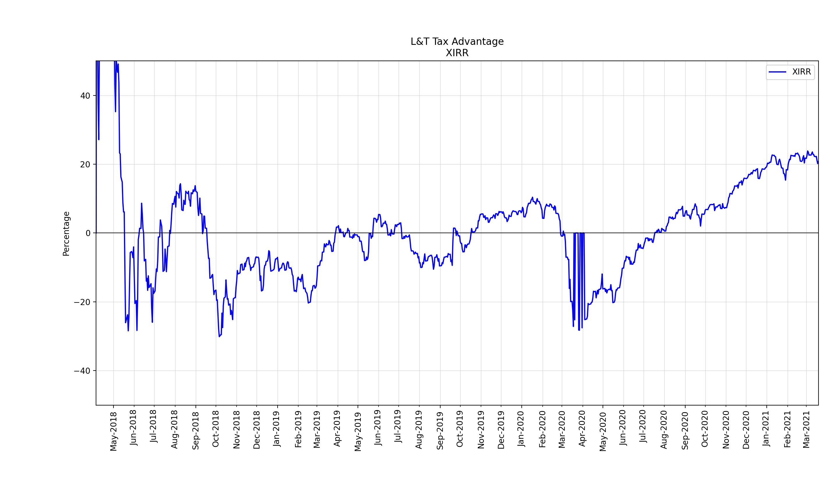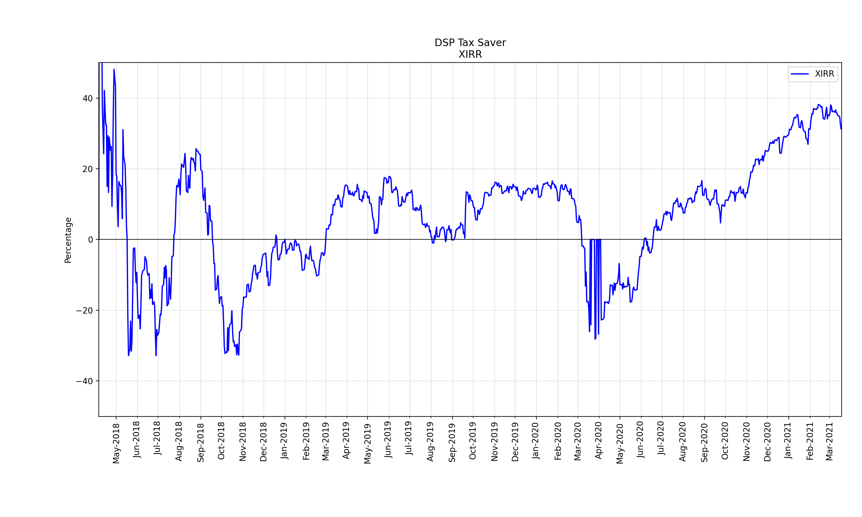 Similar to DSP Tax Saver, the market crash from Mar to Jun 2020 caused the XIRR calculations to go bonkers and resulted in 0% values for sometime. From Mar 2020 to Mar 2021 the XIRR has gone from ~-30% to ~+20%.