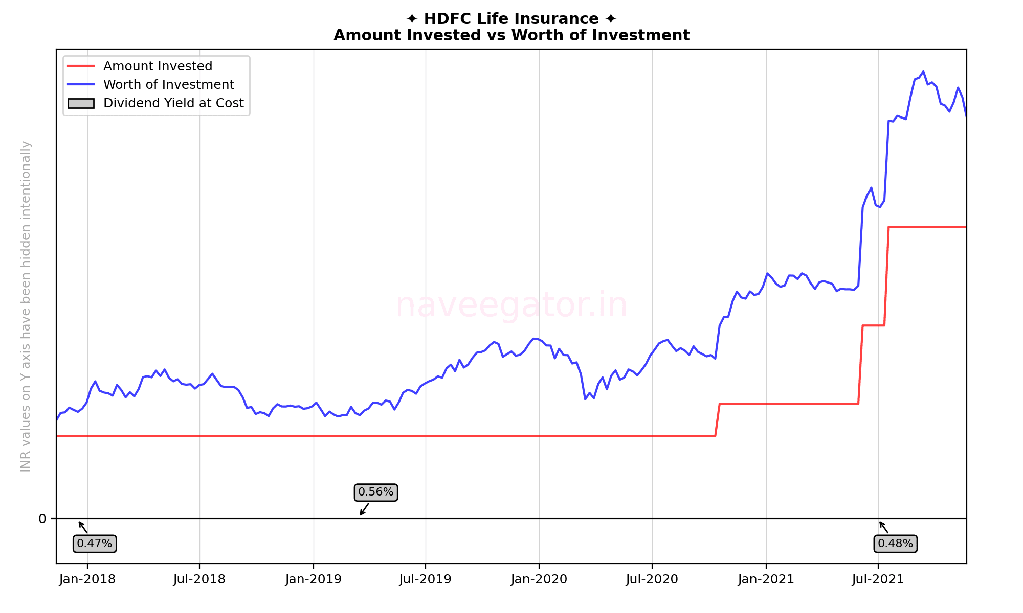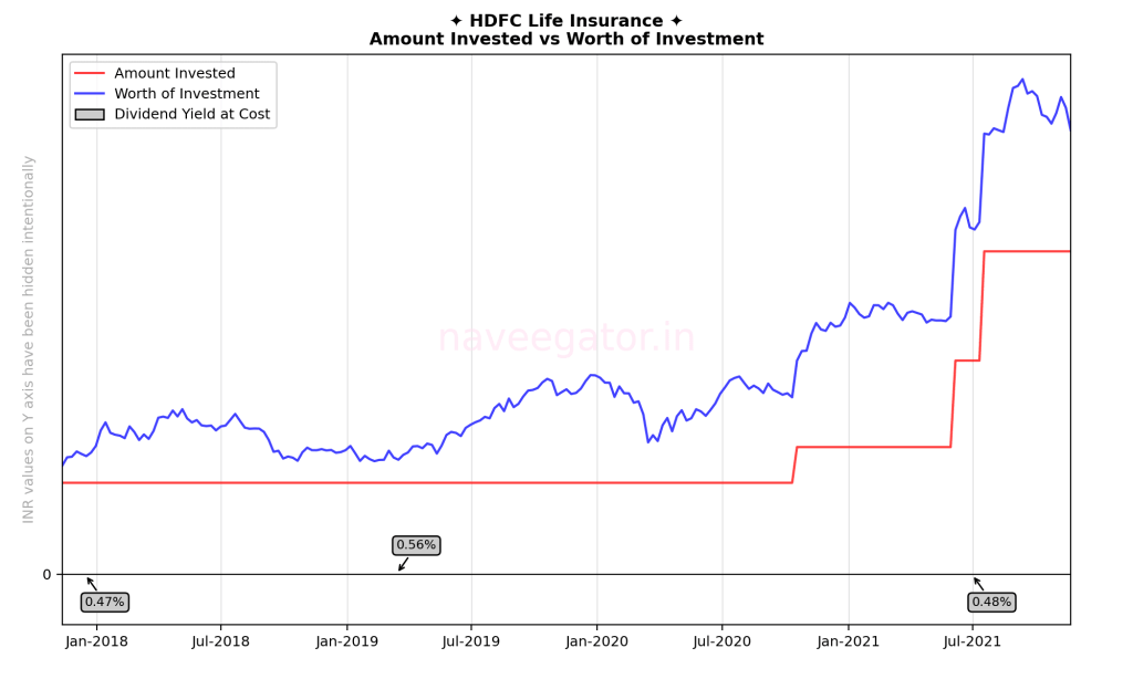 Over these four years the worth of my investment has never fallen below my invested amount. The dividend yield at cost for me has been around 0.5% with the company declaring dividends thrice over four years. They skipped the COVID-19 year like other companies.