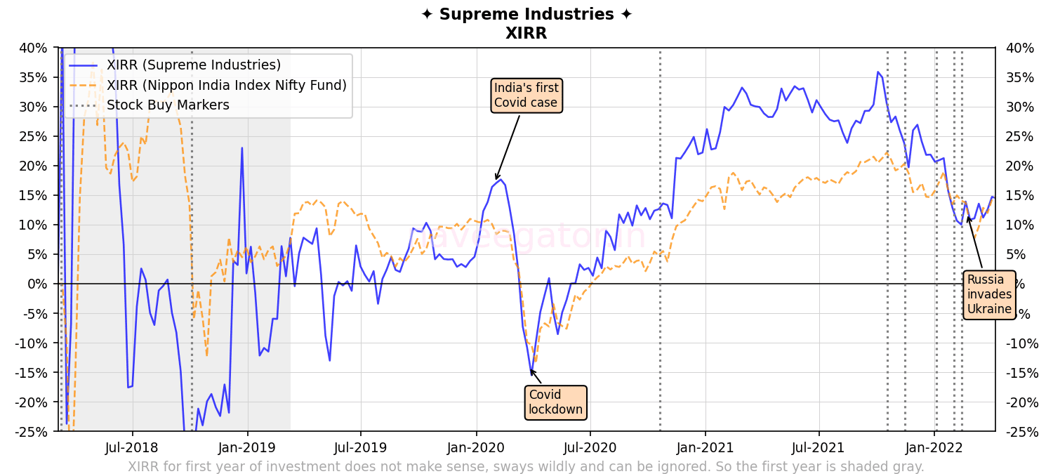 - During the COVID-19 market crash my XIRR went from positive 15% to negative 15%.