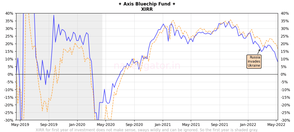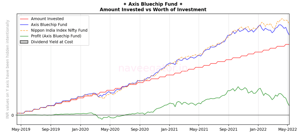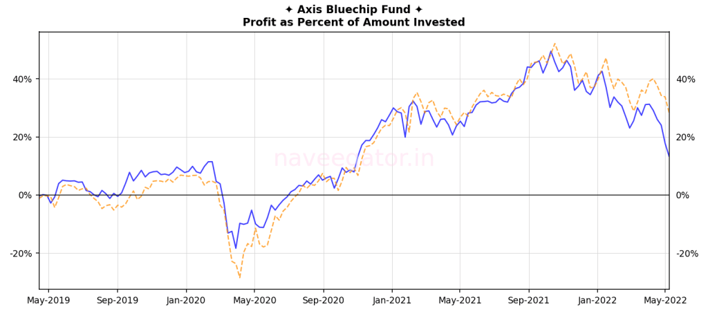 - Till Sep-2021, my returns with Axis Bluechip Fund was comparable to that of Nifty 50 Index Fund. But post that, there has been a sustained underperformance which has only increased during the recent market crash.