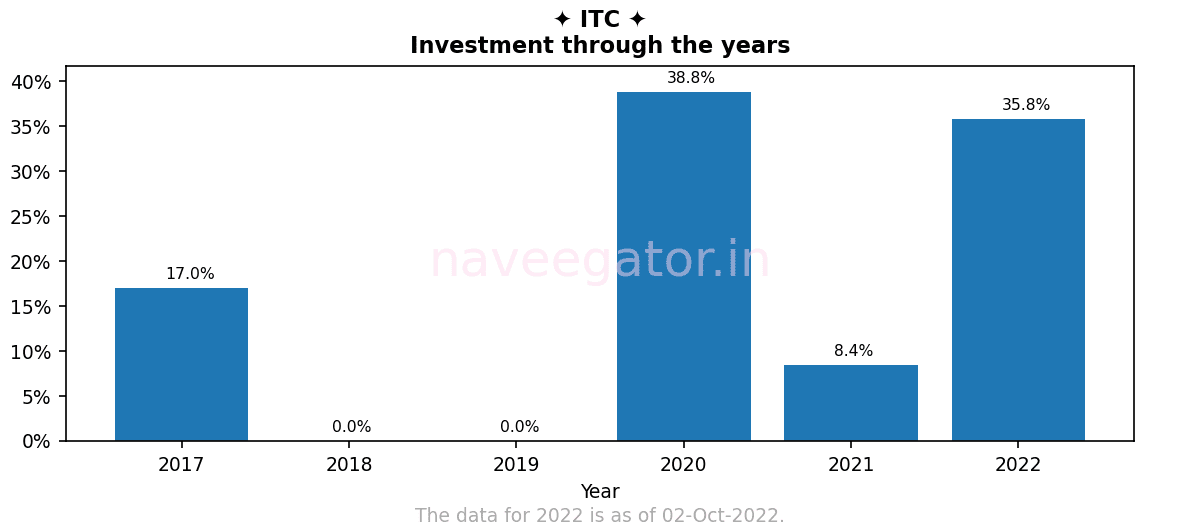 Like Asian Paints, I did not continue investing in ITC after my first investment. That was a bad decision. 83% of my total investment in ITC has been made in last three years so I am still a long way to consider myself as a long term investor.