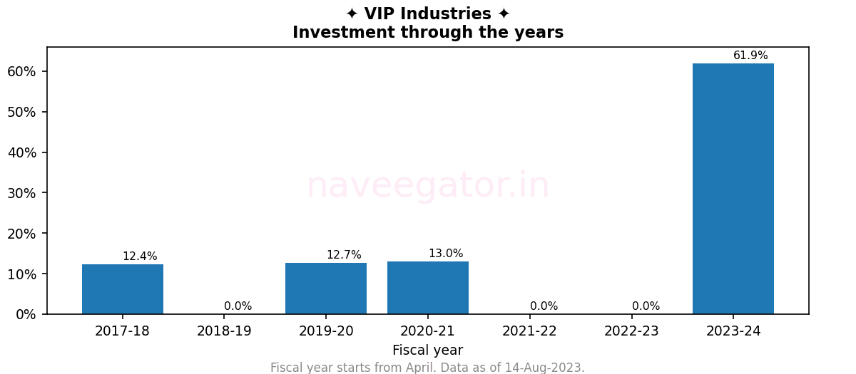 After putting my investment in VIP Industries and forgetting about it for two years, I decided to put in some more money this fiscal year. As you see below 61% on my investment has come in this fiscal year, so my investment in VIP Industries is still young.