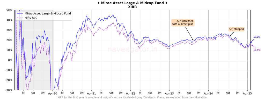 Still, I’m hopeful that in the coming years, the Mirae Asset Large & Midcap Fund will recover and close the gap in performance.