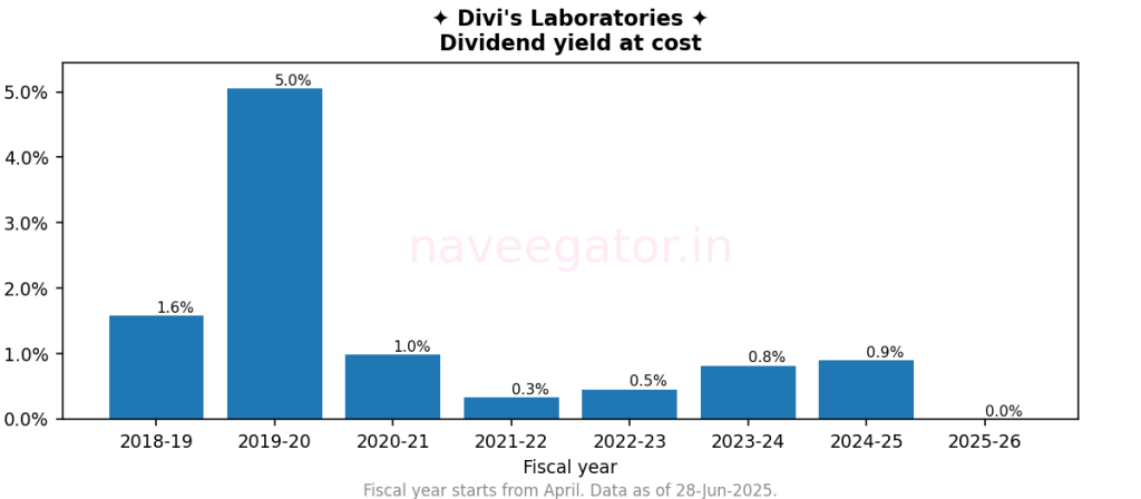 After a painful under performance which lasted two years—Jun’22 to Jun’24—Divi’s Lab has rebounded and is now beating both Nifty 50 and Nifty Next 50 (Figure 1). The dividend yield at cost which was very impressive—and unrealistic—during the initial days is now on a much more realistic level of 0.9% (Figure 3).