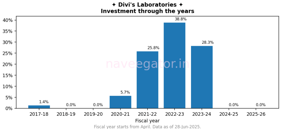 My investment in Divi’s Laboratories has been my biggest missed opportunity. Eight years back—still new to equity investing—I was looking for pharma stocks to invest. During that research—not sure if I should call it research, but let’s go with it—I came across Divi’s Laboratories. I made a small investment in it and forgot about it. In the next 3.5 years the stock went up 5 times! (Figure 1) And I did not make a single new investment during that time! (Figure 2) Every time I thought “it can’t go up any further than that”. Boy was I wrong. So, so wrong!