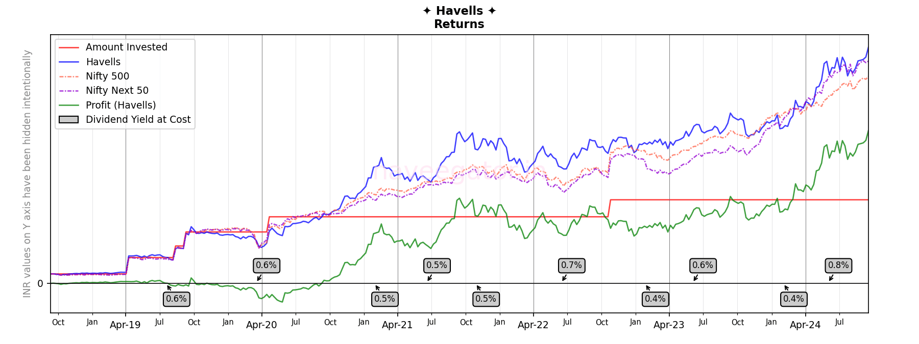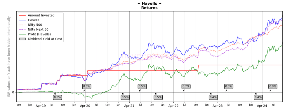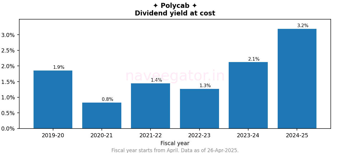 One good thing about my investment in Polycab is the dividend yield (Figure 3). In FY 2024–25, it offered a yield at cost of 3.2%, which is quite decent.