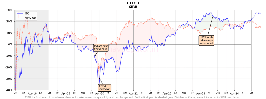 First, in late 2023, Polycab got hit with allegations of a ₹200 crore tax evasion. The stock corrected sharply. Overnight, my paper profits shrank, and my XIRR dropped from 70% to 55% (Figure 1), while total gains fell from 500% to around 350% (Figure 2). That wasn’t easy to watch, but I decided to hold on. Why? Because these were just allegations, and investigations were still ongoing. I had no clue whether they were true or not—and to be honest, I still don’t. So, I chose to do nothing.