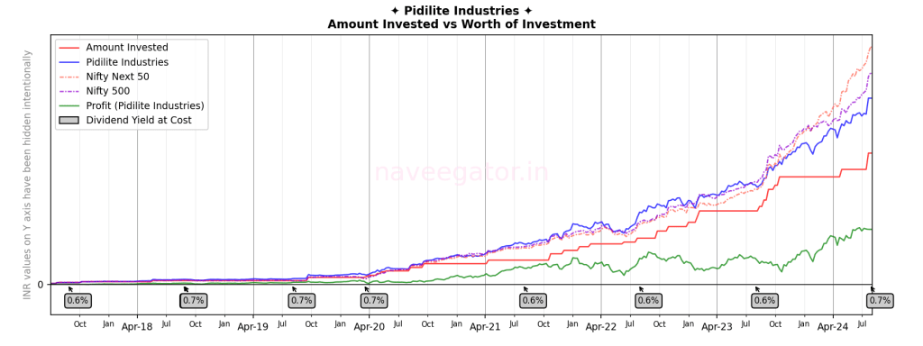 Pidilite remains a key investment in my portfolio. However, after nearly six years of outperforming the index, my luck ran out in October 2023. Both the Nifty Next 50 and Nifty 500 surpassed my returns from Pidilite. Although Pidilite’s XIRR of 18.4% is impressive, it pales in comparison to the Nifty Next 50’s 30.1% XIRR. Additionally, the dividends yield at cost remain meager at less than one percent.