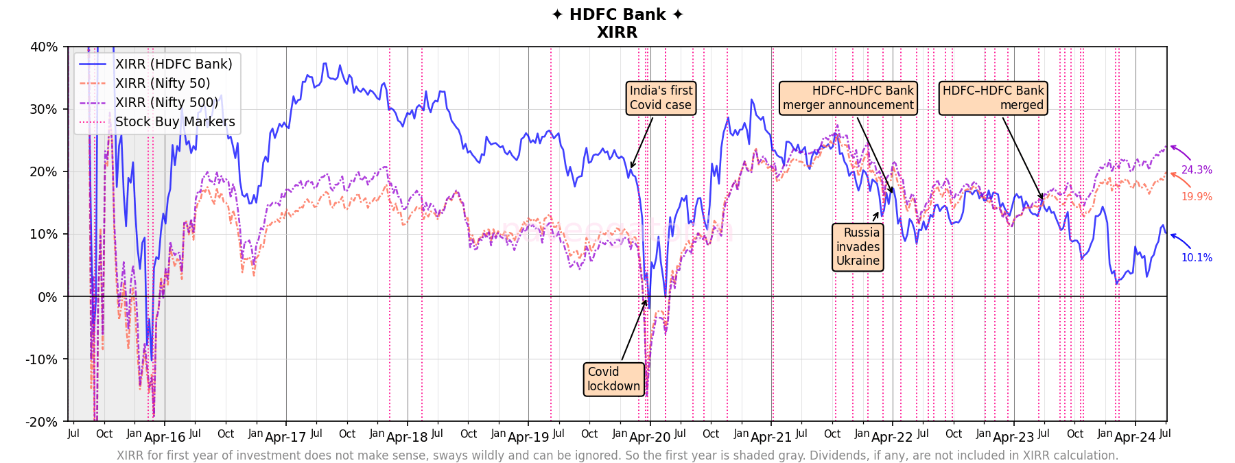 It has been nine years since I started investing in HDFC Bank, and I still can’t call myself a long-term investor. Why? Because in the fiscal year 2023-24, I invested more than I had in the previous eight fiscal years. Why such a significant increase? Well, my earnings were higher, and HDFC Bank was going through a slump. I decided to take a risk by investing during that slump.