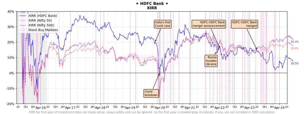 After outperforming Nifty 50 and Nifty 500 during the initial years, my returns have taken a nosedive primarily due to the merger of HDFC and HDFC Bank. The merger seems to have added a lot of concerns for HDFC Bank. Concerns which I simply can’t wrap my head around because they are too technical for me.