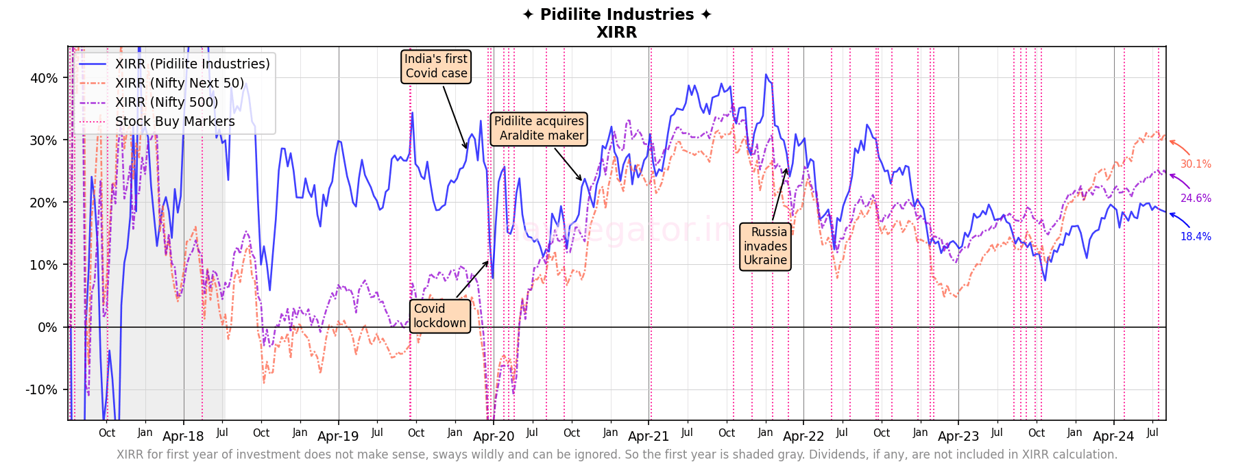 As the last fiscal year (2023-24) unfolded, Supreme Industries witnessed remarkable growth in its share price. Getting included in MSCI index also helped the growth. As a result at one point, my XIRR soared to an impressive 45%!