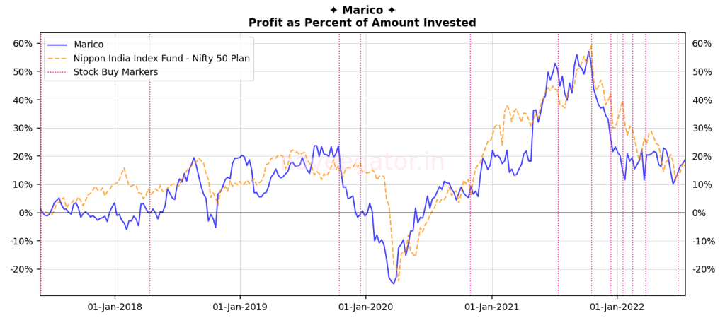 - Considering Nifty 50 index for comparison, my investment in Pidilite Industries has beaten it most of the time. As of today my XIRR stands at 23% compared to 18% for Nifty 50 Index. Woohoo!