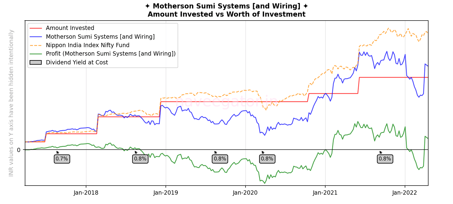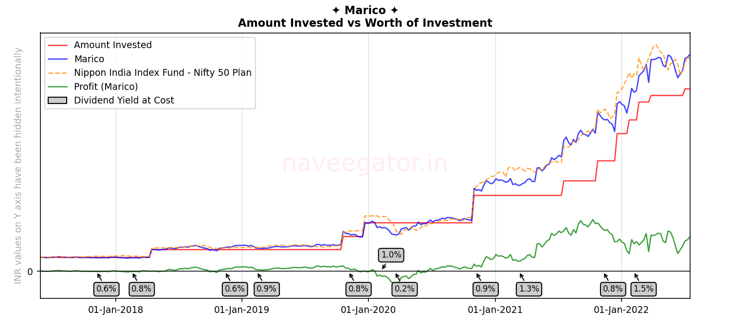 - The company pays dividends every year but my dividend yield at cost has been at a meagre 0.6%. But looking at the XIRR I should not be complaining.