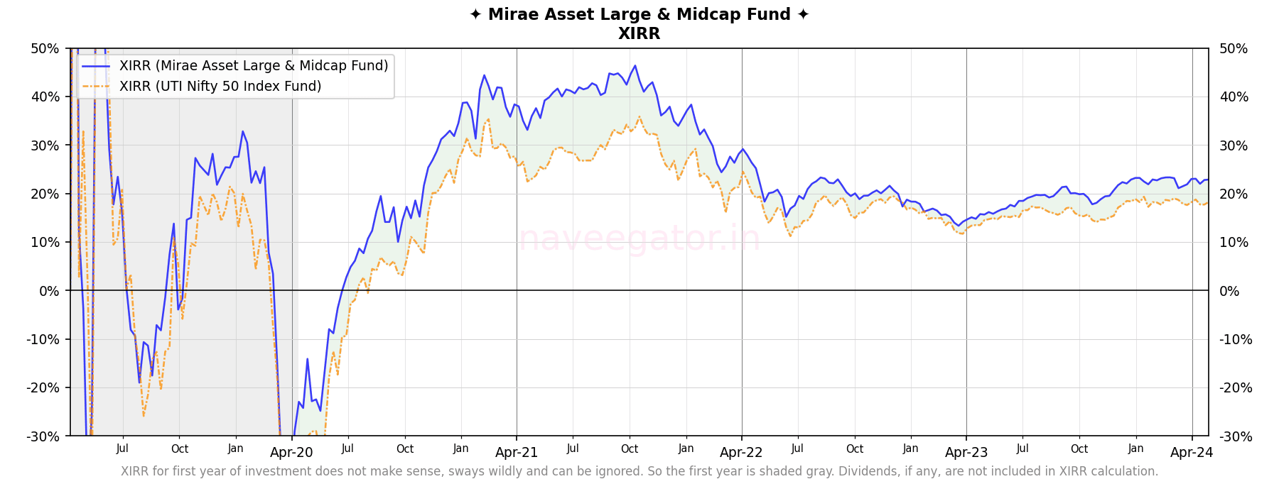 Still, I’m hopeful that in the coming years, the Mirae Asset Large & Midcap Fund will recover and close the gap in performance.