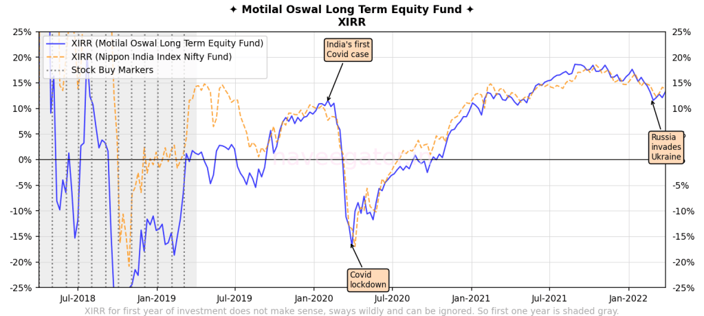 - After four years of negative XIRR, last year I finally saw it go positive. Yay! But the Russian invasion of Ukraine pulled it down. Ouch! And the listing of demerged Motherson Sumi Wiring pulled it up again. Yay!